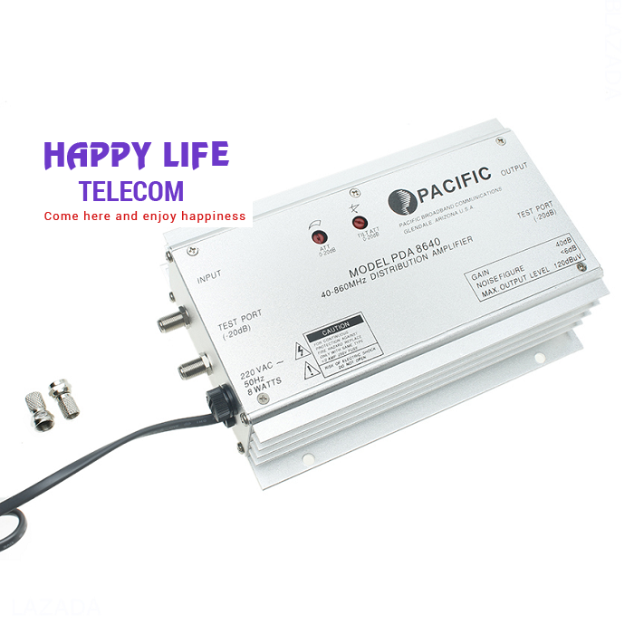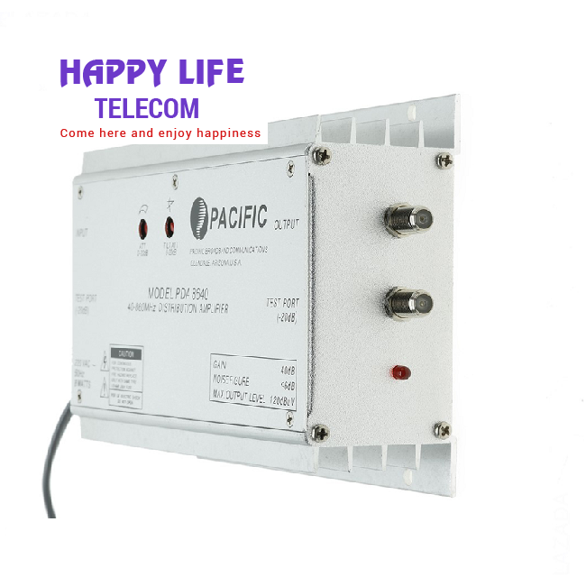 - Khuếch đại truyền hình cáp PACIFIC PDA 8640 công suất thực tế 40dB, cường độ tín hiệu, chất lượng hình ảnh, độ méo hình ảnh, độ nét hình ảnh, chất lượng âm thanh được điều chỉnh thủ công.
