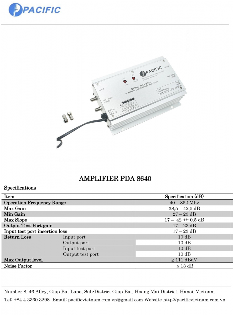 Catalogue bộ khuếch đại truyền hình cáp Pacific PDA 8640